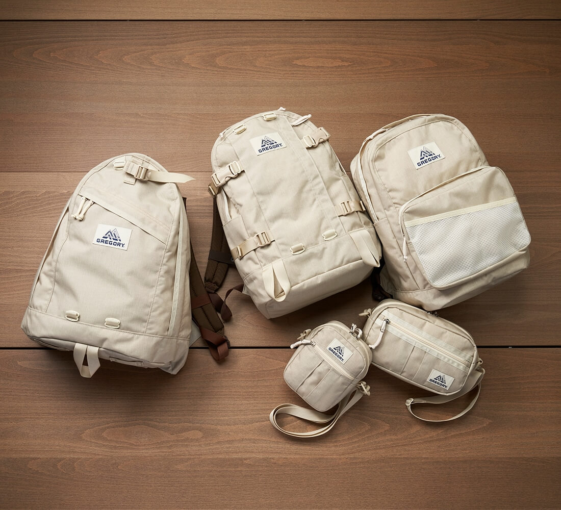 ビーチの砂浜のような、穏やかで上品なサンドベージュが発売しました。正面の本体はナチュラルなベージュカラーで、他のアイテムとコーディネートしやすく、さまざまなシーンに溶け込み洗練されたスタイルを演出します。背面や内装はダークブラウンカラーの仕様でアウトドアなどでもタフに使用できます。今期おすすめのコレクションで、バックパックからショルダーバッグまで幅広いアイテムを豊富に展開しています。