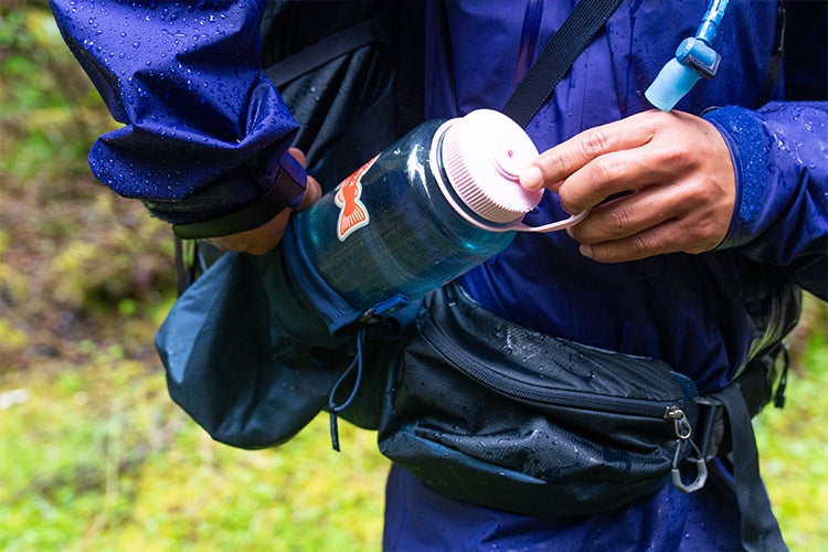 サングラスやトレイルスナックを素早く出し入れでき、ほとんどの携帯電話も収納可能。