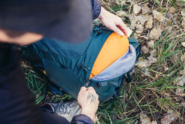 E荷物の取り出しやギアの整理収納に便利なフルレングスのサイドジッパー(パラゴン40/メイブン38を除く)