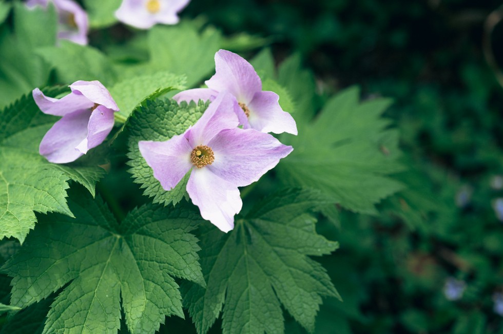 “山野草の女王”ことシラネアオイも!シカやサル、クマといった大型動物が生息しない佐渡では、本土で問題になっている動物、とくにシカの食害が起こらないため、本土に比べてたくさんの花を楽しむことができるという。