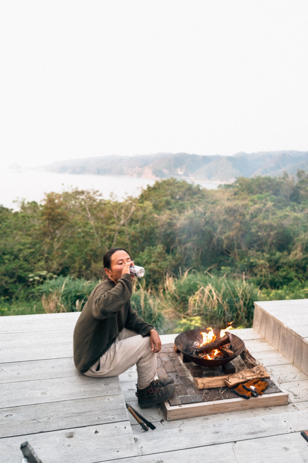 -roof-」は日本海に向かってデッキが設けられていた。時間を忘れて水平線に沈む夕日や夜の海に浮かぶ漁火を眺め、潮騒に包まれて焚き火を囲む。そんなぜいたくな時間を過ごせるという趣向だ。